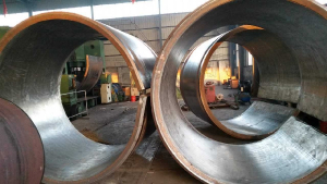 工藝流程:  坡口加工 → 滾  圓 →  對(duì)口 →  焊 接 → 校 圓  →   環(huán)向?qū)?/span> → 探傷檢驗(yàn)